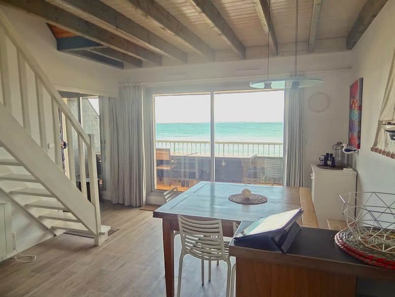 Appartement pieds dans l’eau, pleine vue mer face à une petite plage de sable blanc … Au calme, à l’abri du vent, idéal pour se ressourcer!